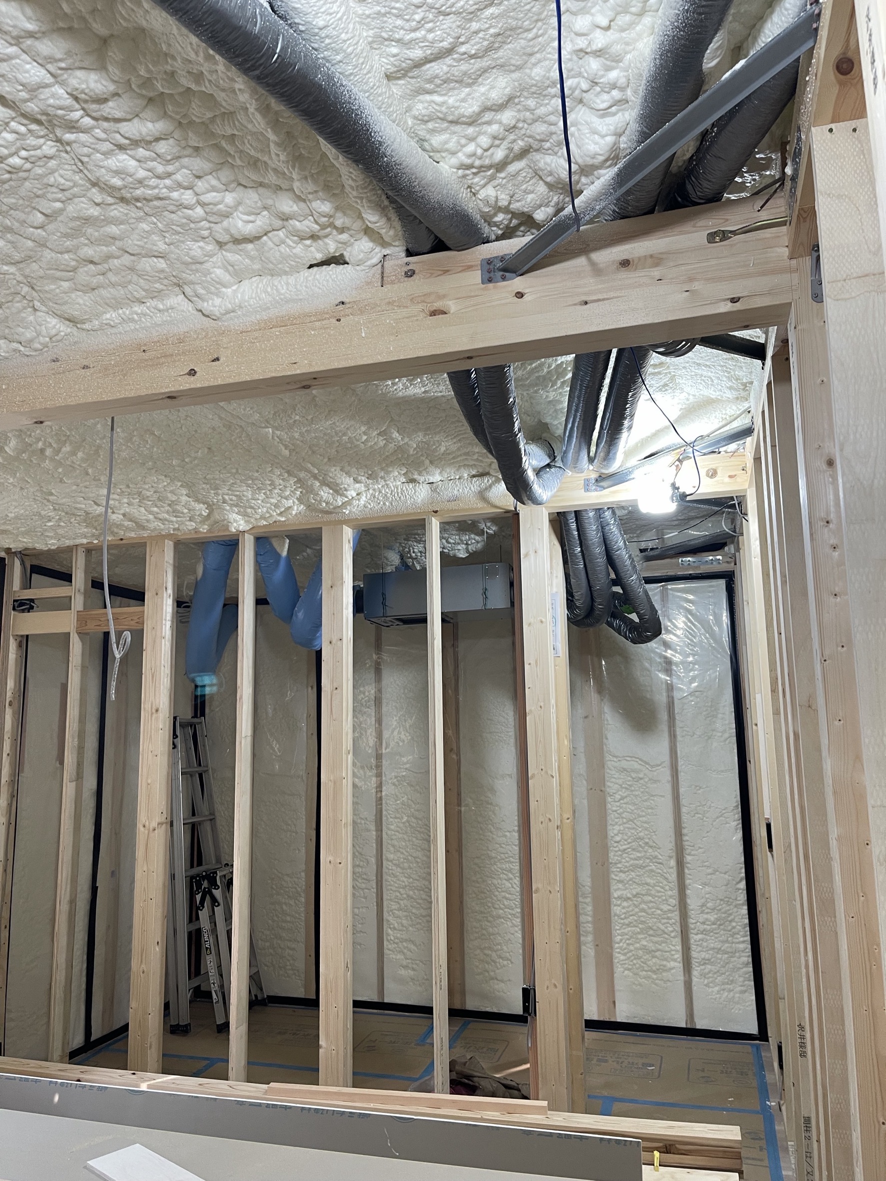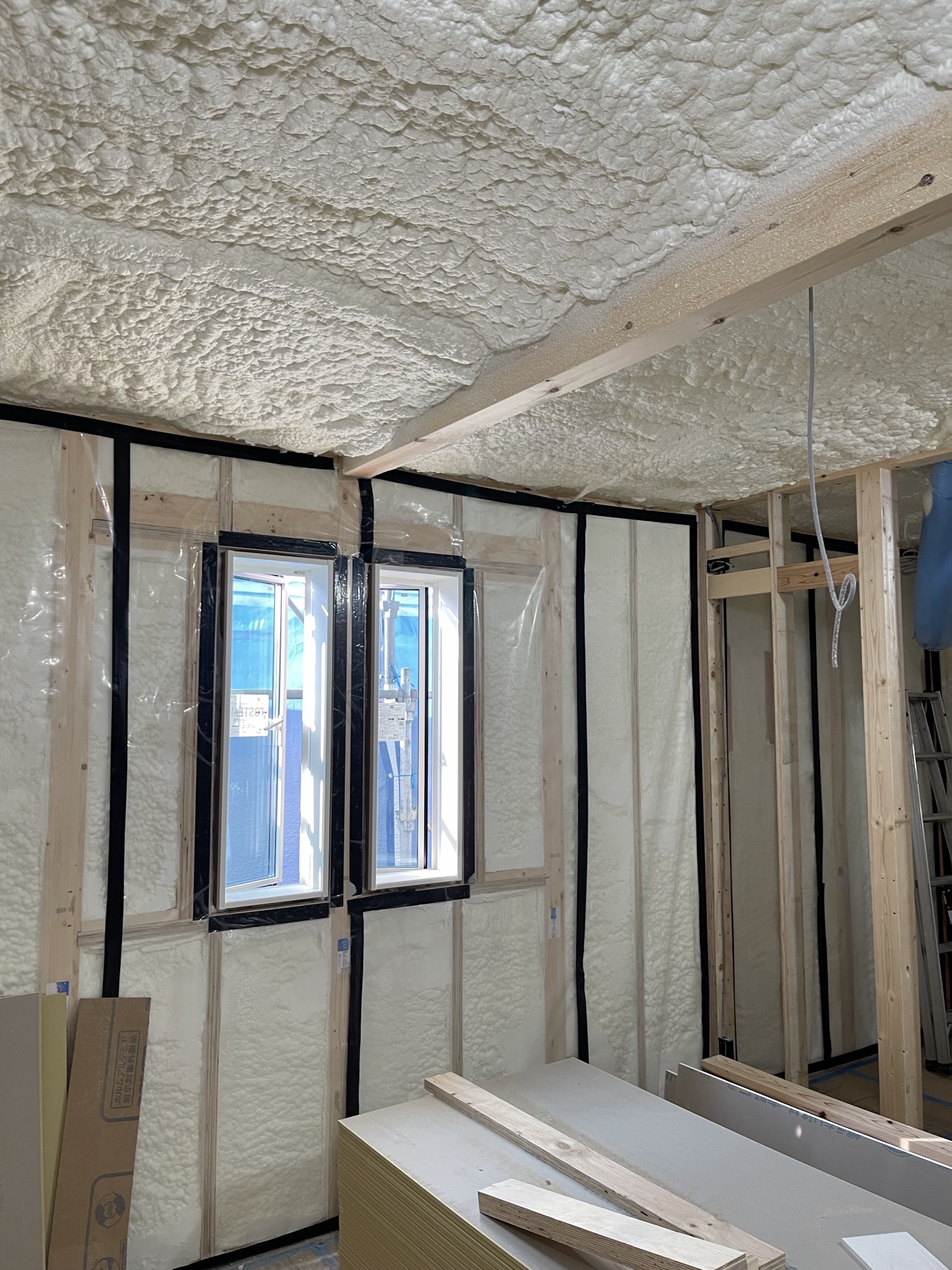 最近ウレタン断熱で外壁面フィルム貼りの気密仕様が主流になってきた!